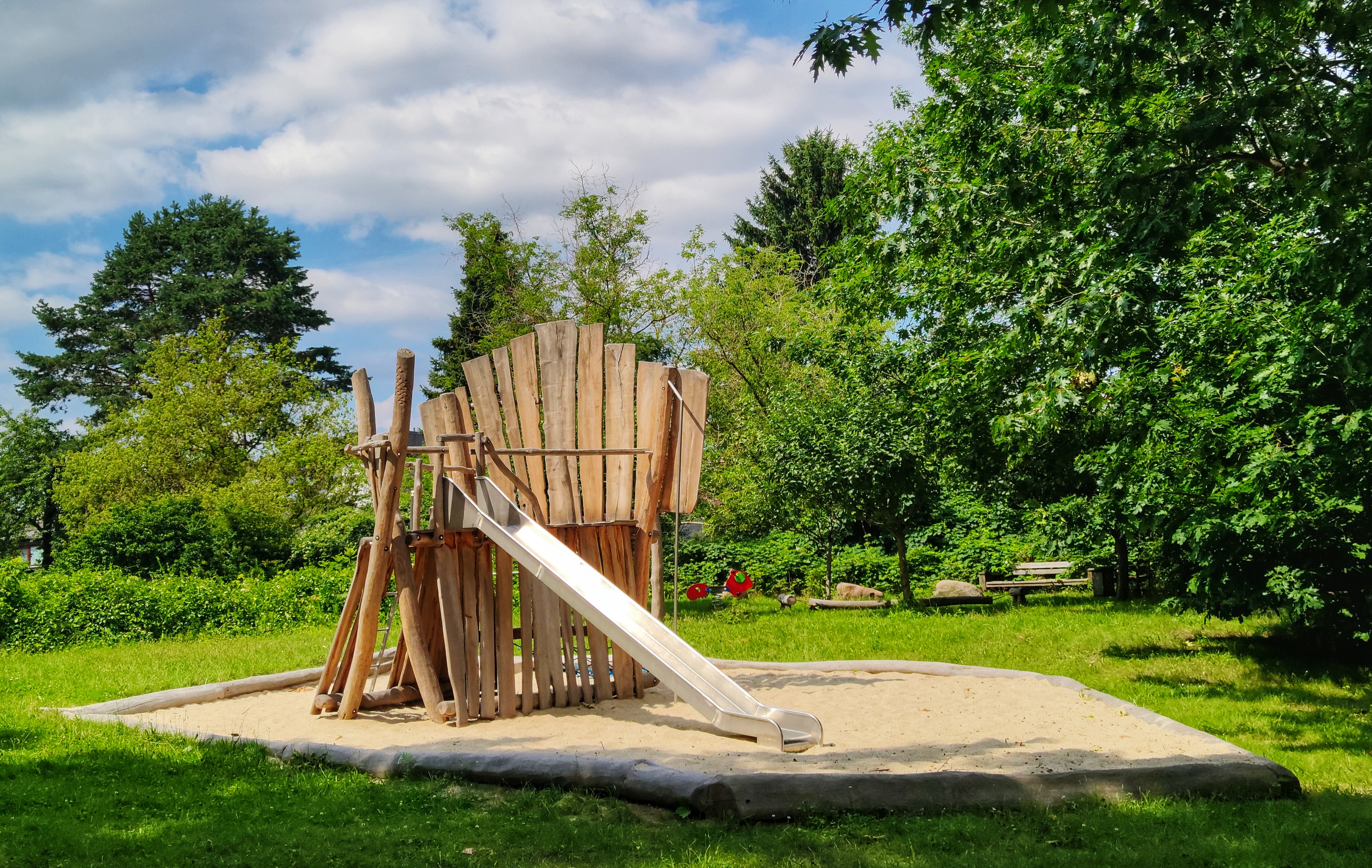 Zunächst waren wir von den vielen Regeln etwas schockiert, aber feste Grenzen haben auch etwas Gutes: solange man sich innerhalb dieses Regelwerkes bewegt kann man wiederum machen was man will. Ein gut gebauter Spielplatz kann sehr viel mehr sein als nur eine Schaukel und eine Rutsche in einem Sandkasten! Die Phantasie und die Fähigkeiten der Kinder aufs Äußerste zu reizen ist uns jedes Mal wieder ein Ansporn uns etwas Neues und Ungewöhnliches auszudenken.