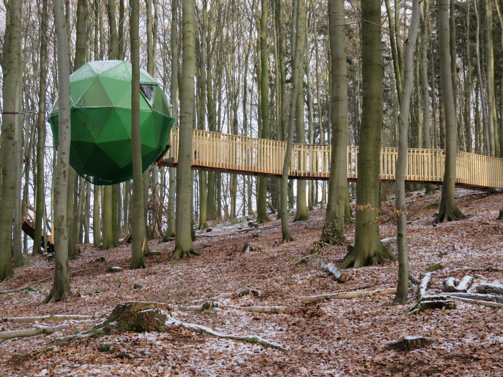 Nur an Bäumen befestigt hängen dort nun drei Häuser in fünf bis acht Meter Höhe im Buchenwald und werden über Treppen, Podeste und Hängebrücken miteinander verbunden. Mit sehr viel Liebe zum Detail und höchsten ökologischen Standards ausgestattet kann man so nun das ganze Jahr über dort nächtigen und sich auch von vielen anderen Angeboten an Gastronomie und Unterhaltung verwöhnen lassen.