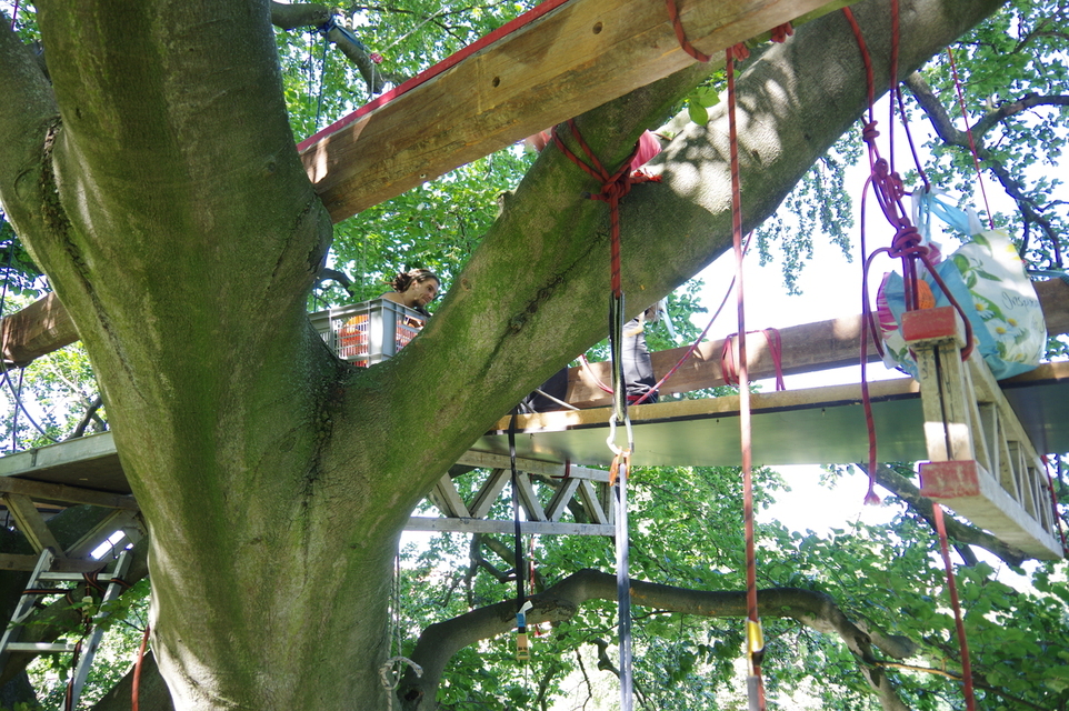 In diesem Baum die 3 Plattformen und die Leitern so zu errichten, dass danach auch alles fest und gerade war, stellte uns immer wieder vor große Herausforderungen, hat aber vor allem auch furchtbar viel Spaß gemacht!